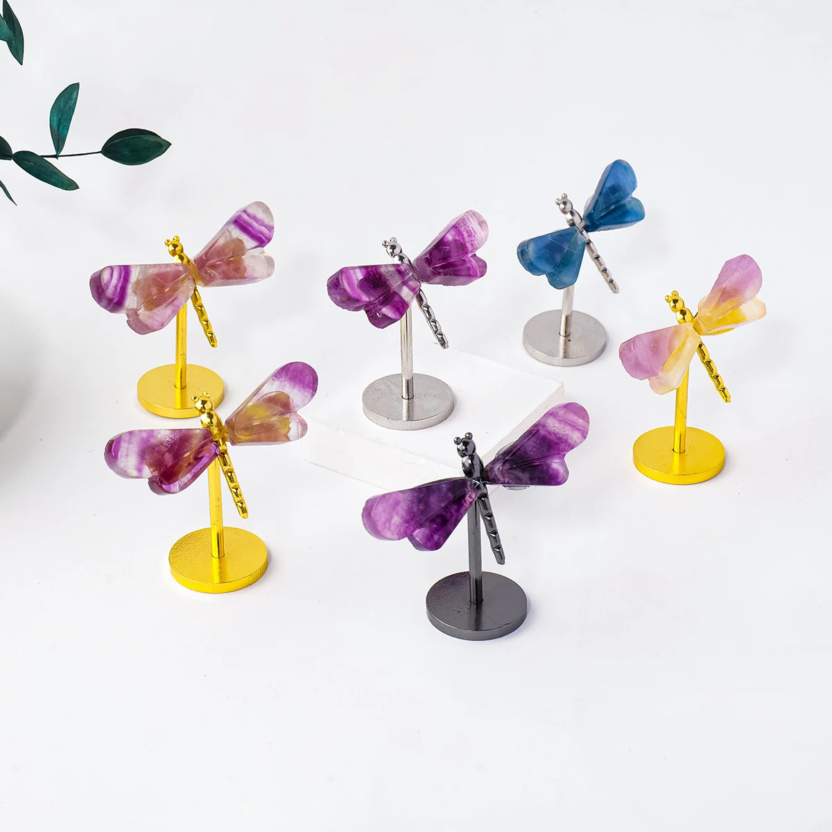 1PC Fluorite Crystal Dragonfly Ornament – Mini Stand Animal Style Desktop Decoration