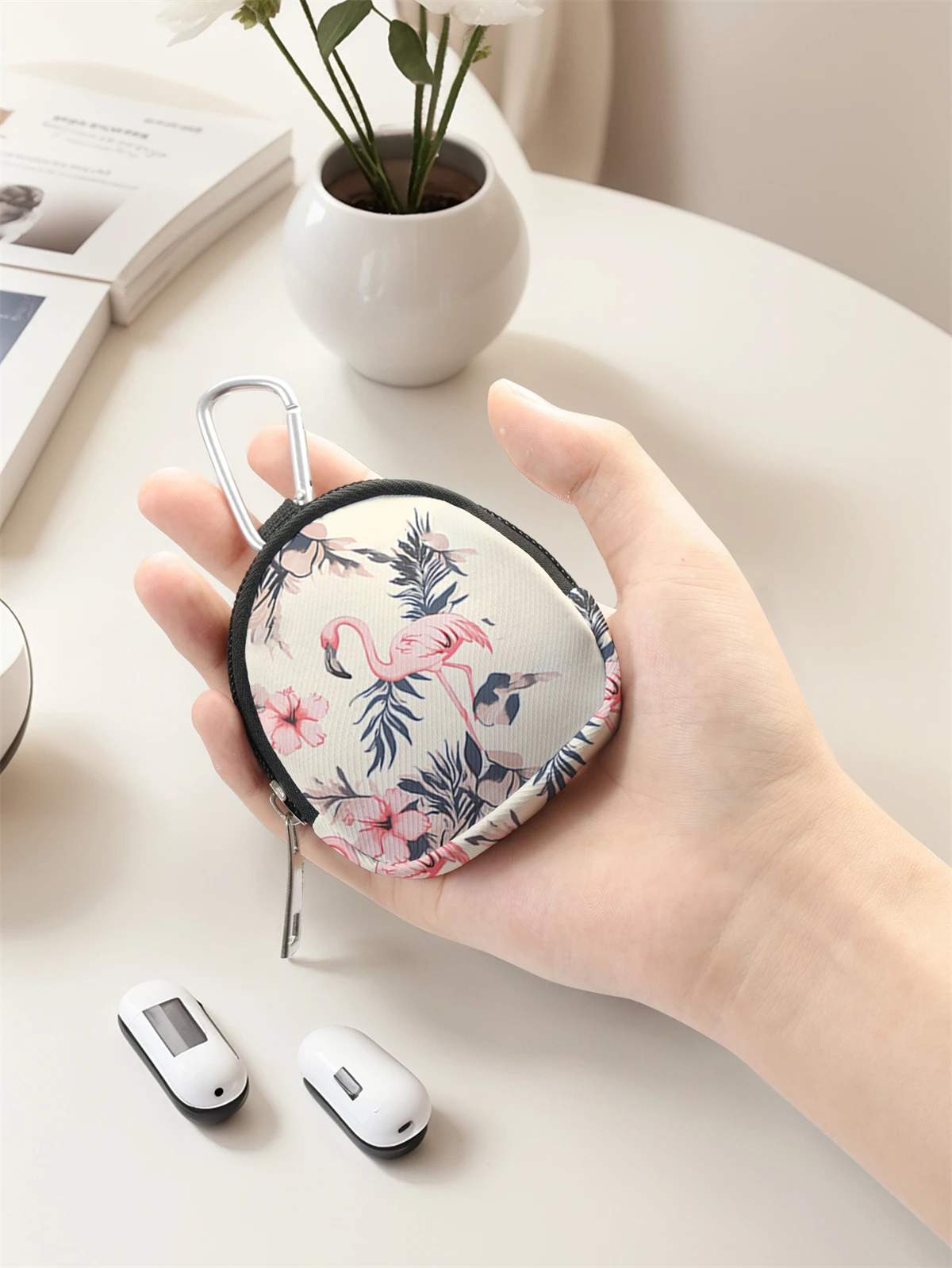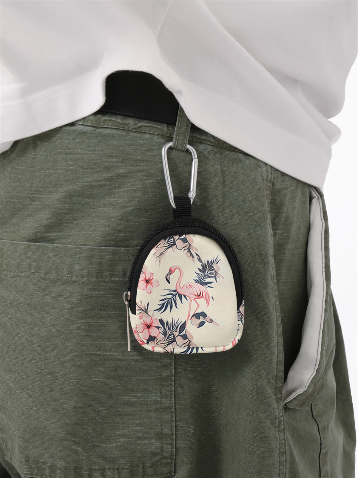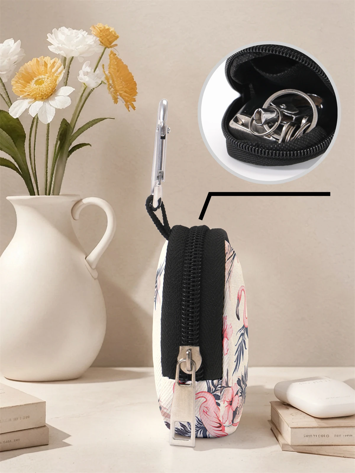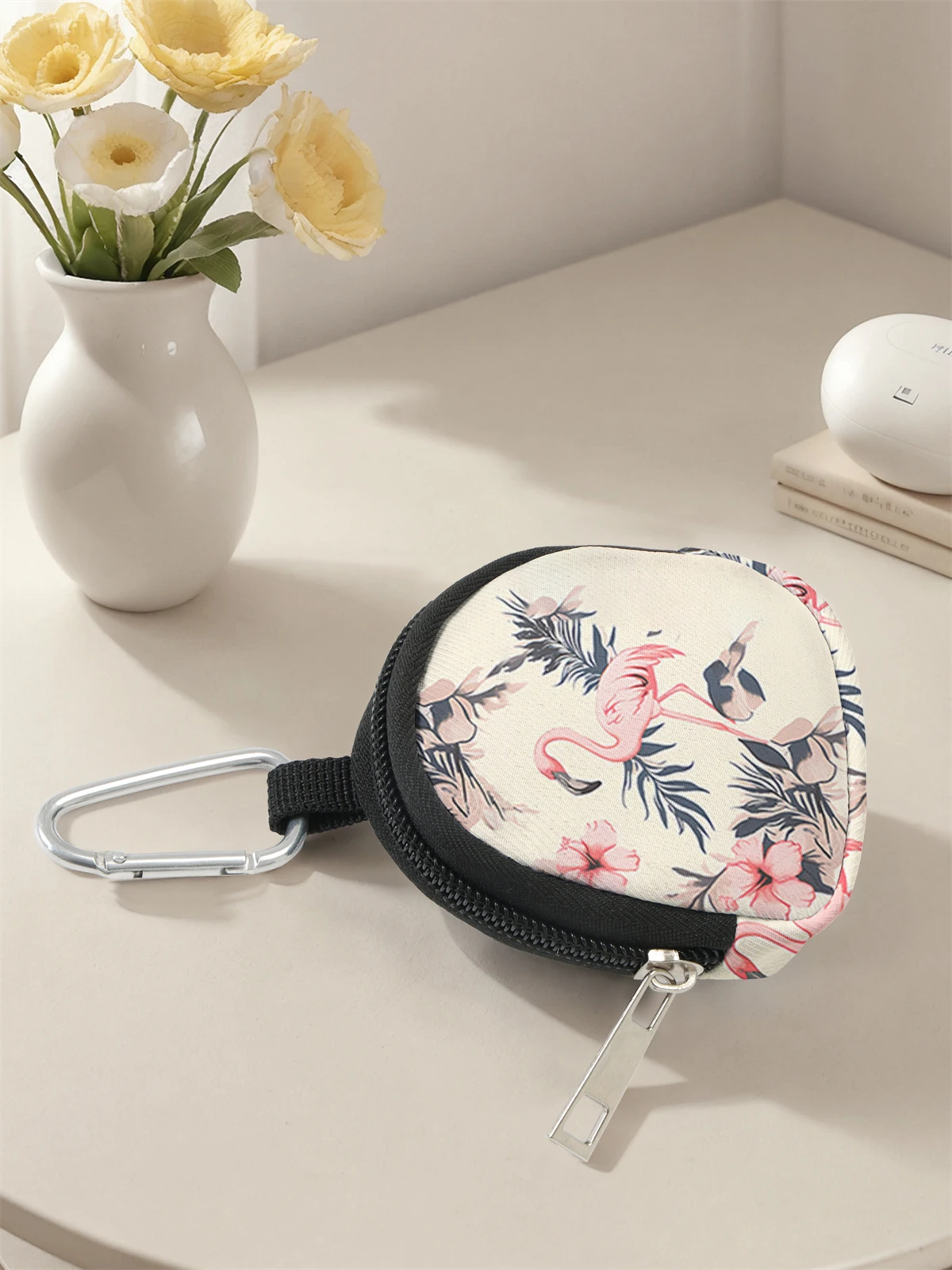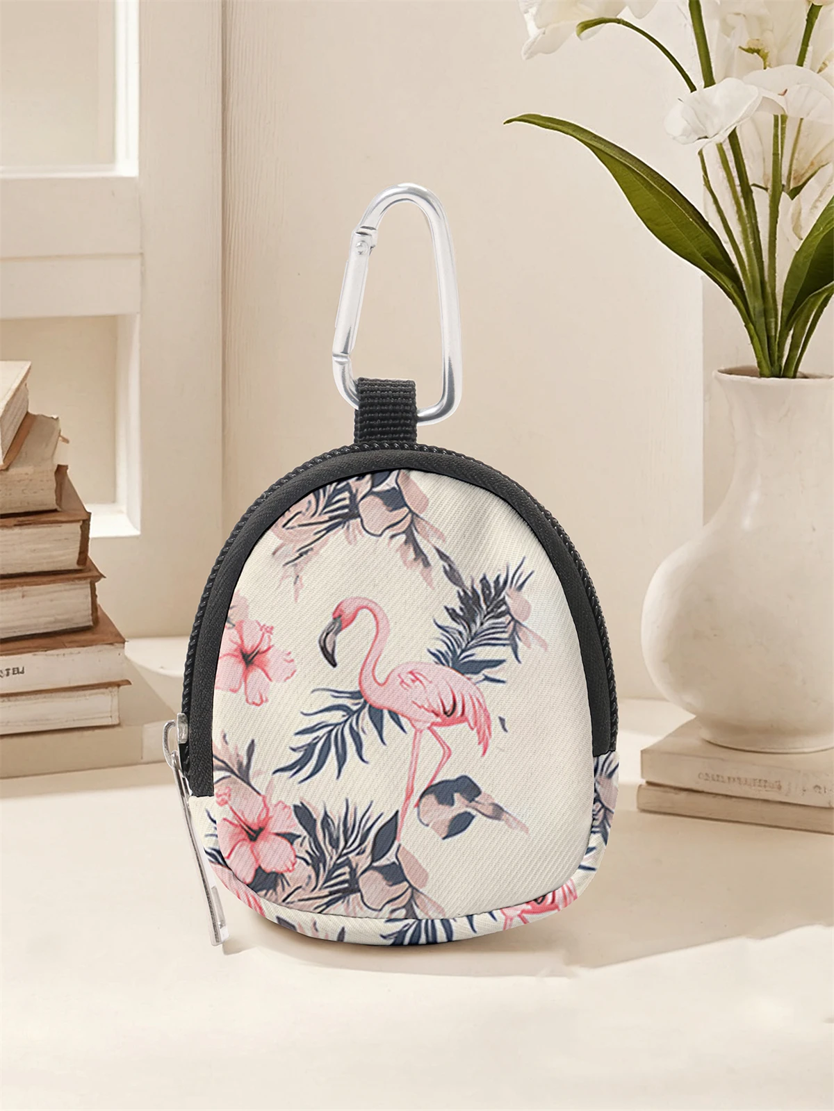 Flamingo Print Mini Change Wallet – Zipper Coin Purse with Hook Clip