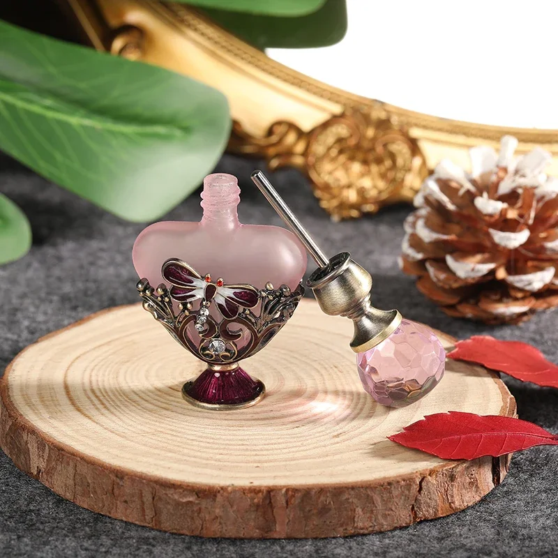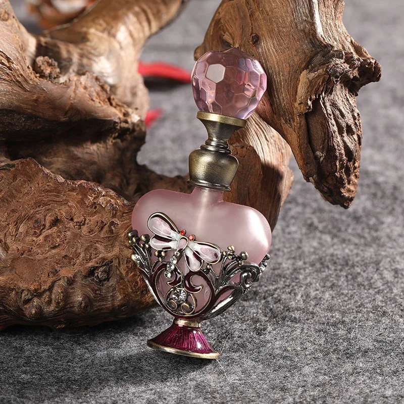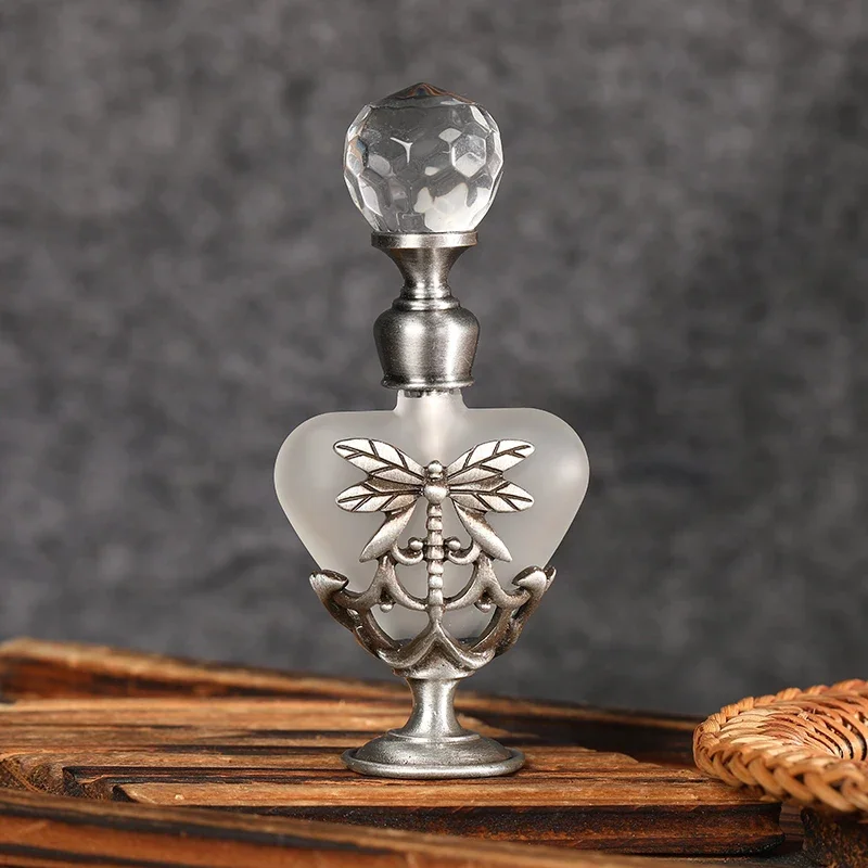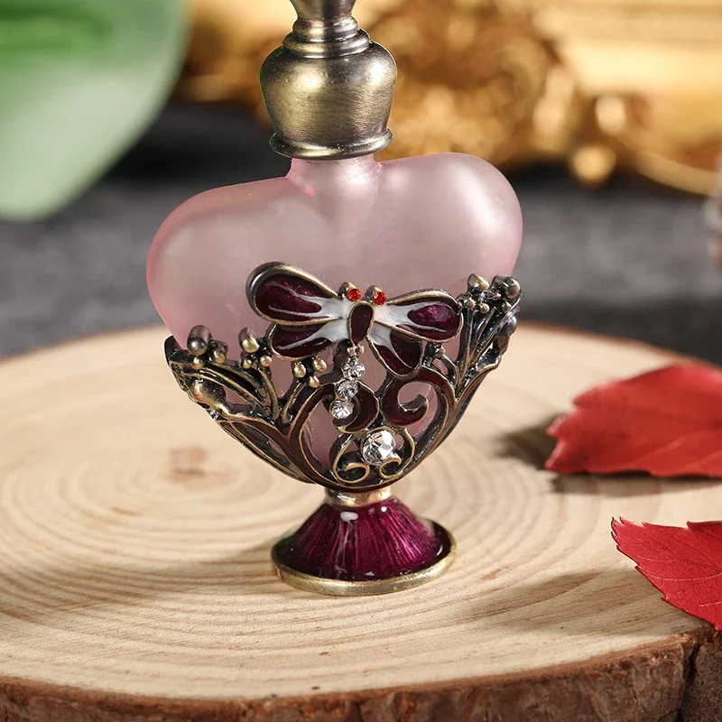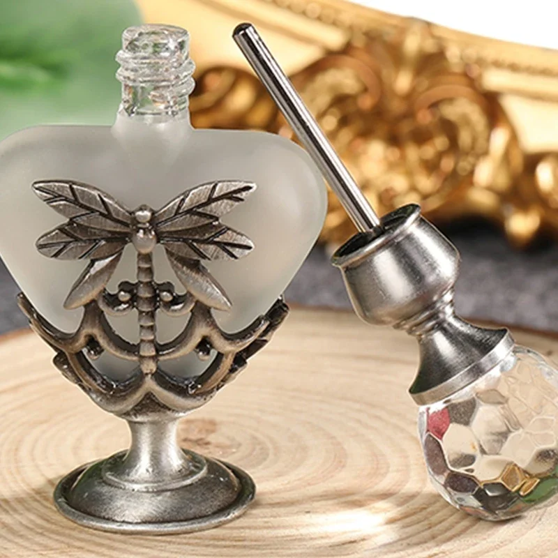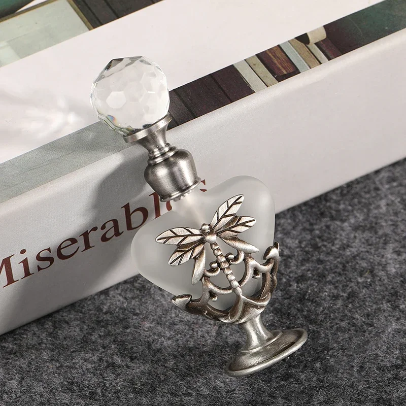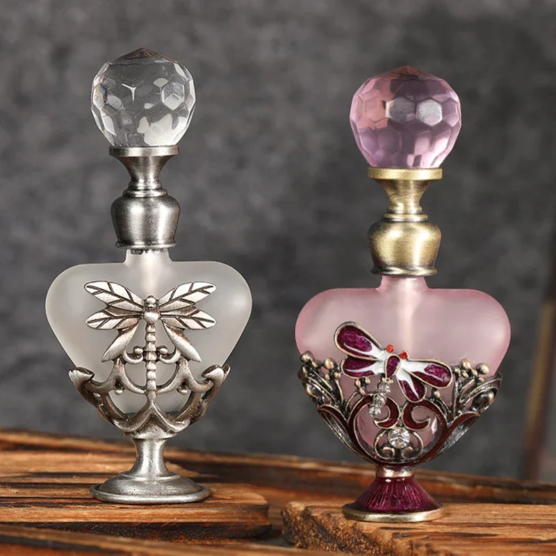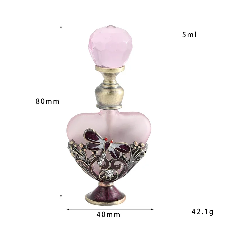 Features: 100% Brand New and high Quality Retro perfume bottle: Innovative heart shape and dragonfly charm decor design Capacity:5ml. Material: alloy + glass Handmade, fashion modeling; Add fashion sense.Decore your dresser. Exquisite clear crystal cap: Direct rotation,thus open,convenient and practical.Suitable for applied in your favorite perfume,cologne,fragrance,lotion,toner,essential oil,etc. It's ideal for small indoor and outdoor activities or travels; good gifts for friends, lovers, relatives, etc.